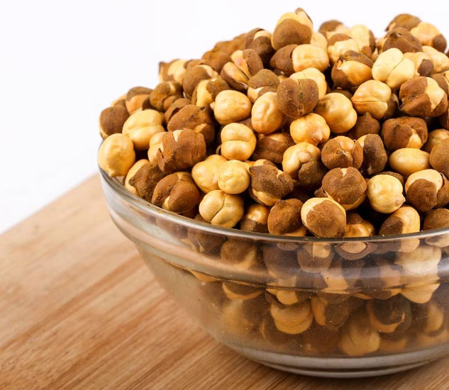Roasted gram, available with or without skin, offers a crunchy and nutritious snack option.